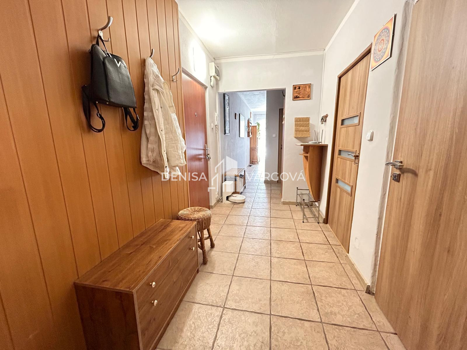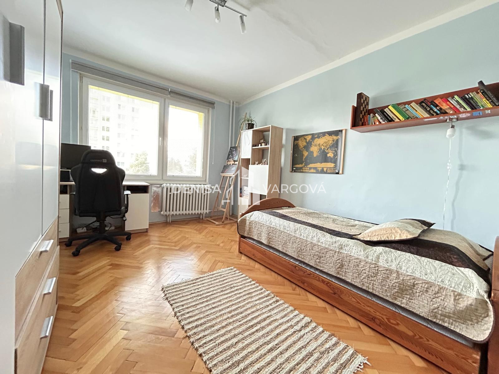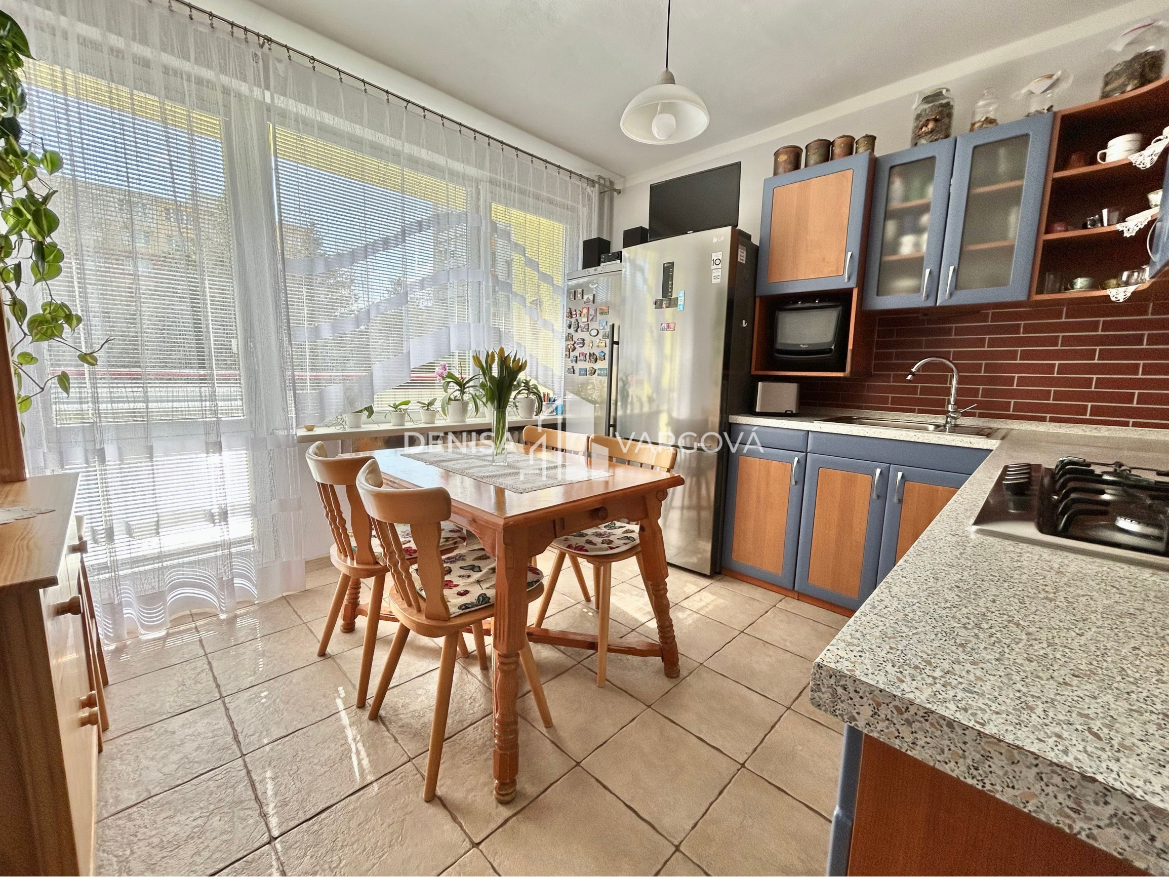 Dispozícia bytu: vstupná chodba s komorou, ktorá je využiteľná aj, ako šatník, tri samostatné izby z toho z dvoch je výstup na loggiu, priestranná kuchyňa s výstupom na loggiu, kúpeľňa a WC. Veľkým benefitom tohto bytu je priestorovo veľkorysá obývacia izba s možnosťou predelenia na dve samostatné. K bytu prináleží murovaná pivnica nachádzajúca sa v suteréne bytového domu. V okolí sa nachádza kompletná občianska vybavenosť: obchody, školy, škôlky, pošta, zástavky MHD, veľa zelene, detské ihriská. Výborná pešia dostupnosť do centra mesta. Kúpa tohto bytu je skvelou investíciou. Parkovanie je verejné bezproblémové. Priamo pri bytovom dome je nová vyasfaltovaná plocha. Energetický certifikát bytového domu : "B"