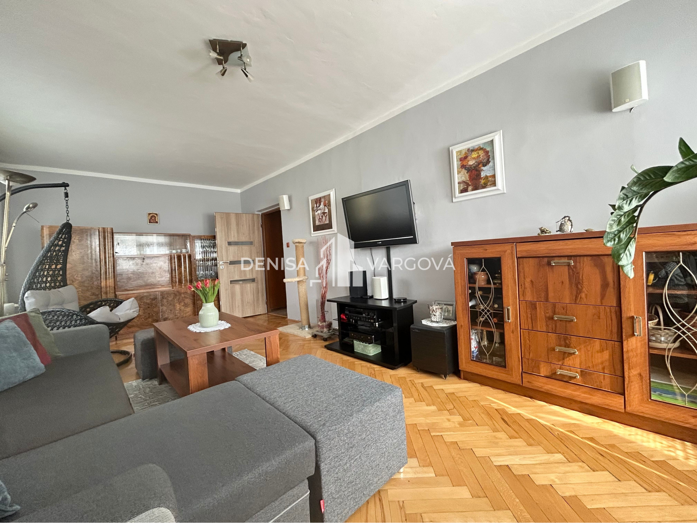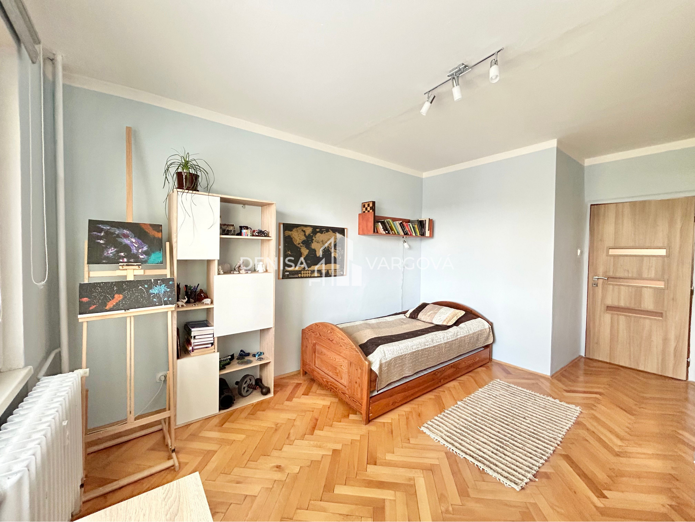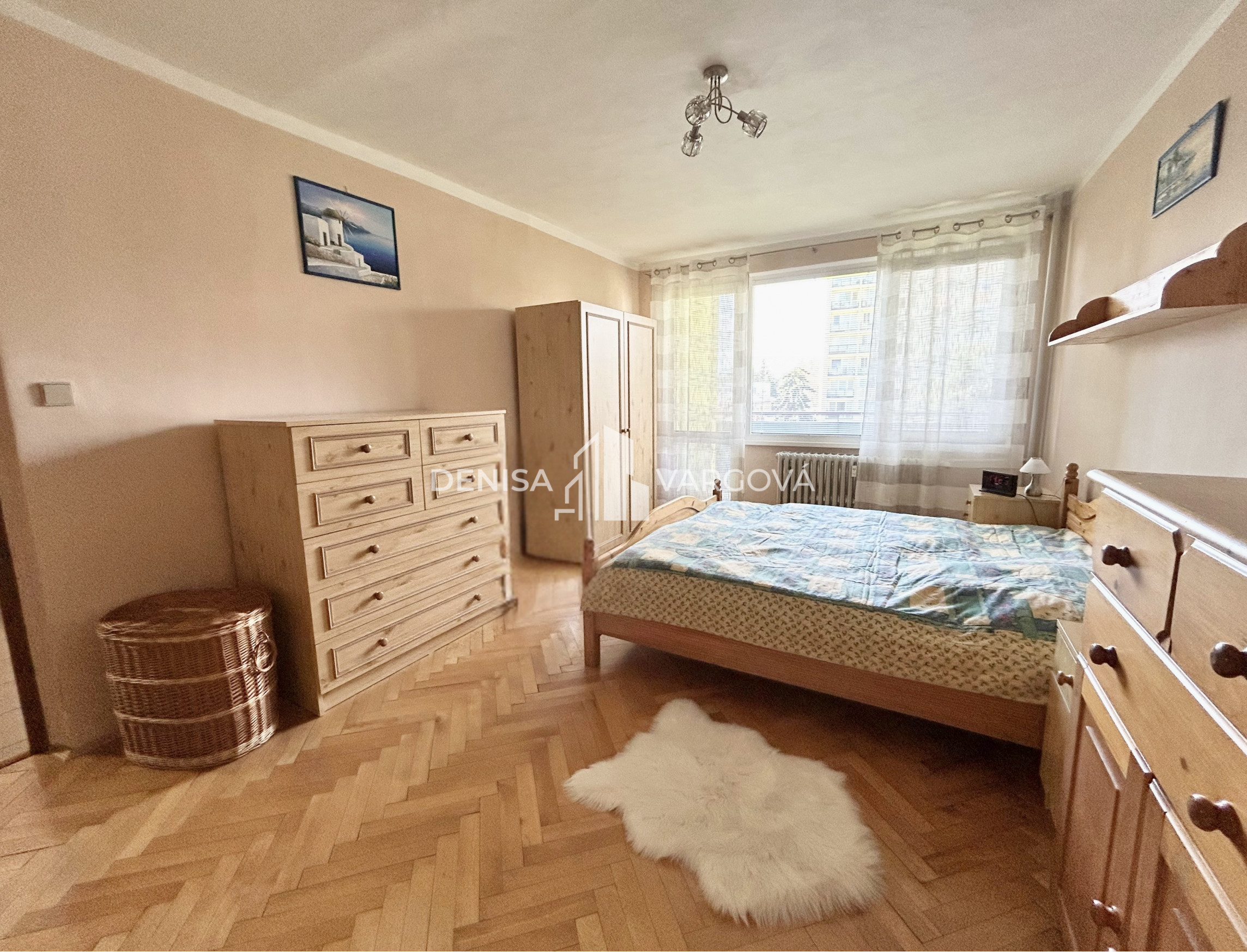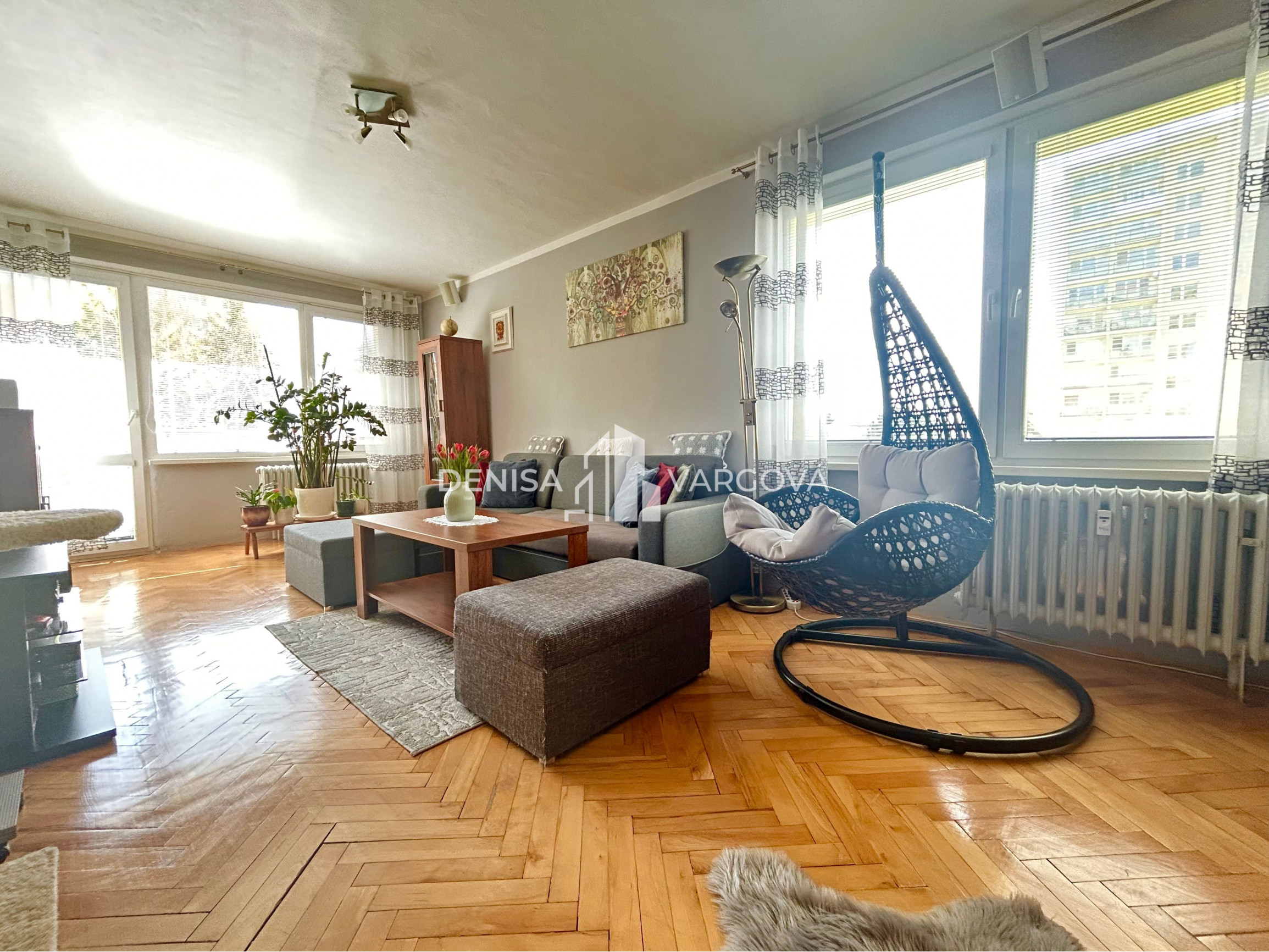 Dispozícia bytu: vstupná chodba s komorou, ktorá je využiteľná aj, ako šatník, tri samostatné izby z toho z dvoch je výstup na loggiu, priestranná kuchyňa s výstupom na loggiu, kúpeľňa a WC. Veľkým benefitom tohto bytu je priestorovo veľkorysá obývacia izba s možnosťou predelenia na dve samostatné. K bytu prináleží murovaná pivnica nachádzajúca sa v suteréne bytového domu. V okolí sa nachádza kompletná občianska vybavenosť: obchody, školy, škôlky, pošta, zástavky MHD, veľa zelene, detské ihriská. Výborná pešia dostupnosť do centra mesta. Kúpa tohto bytu je skvelou investíciou. Parkovanie je verejné bezproblémové. Priamo pri bytovom dome je nová vyasfaltovaná plocha. Energetický certifikát bytového domu : "B"