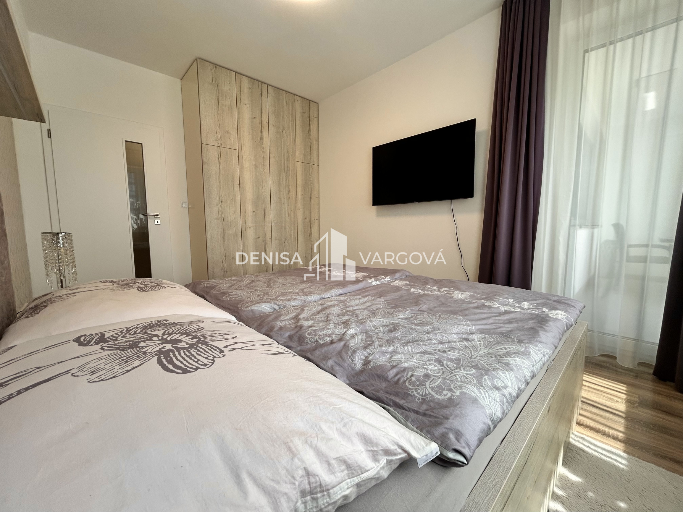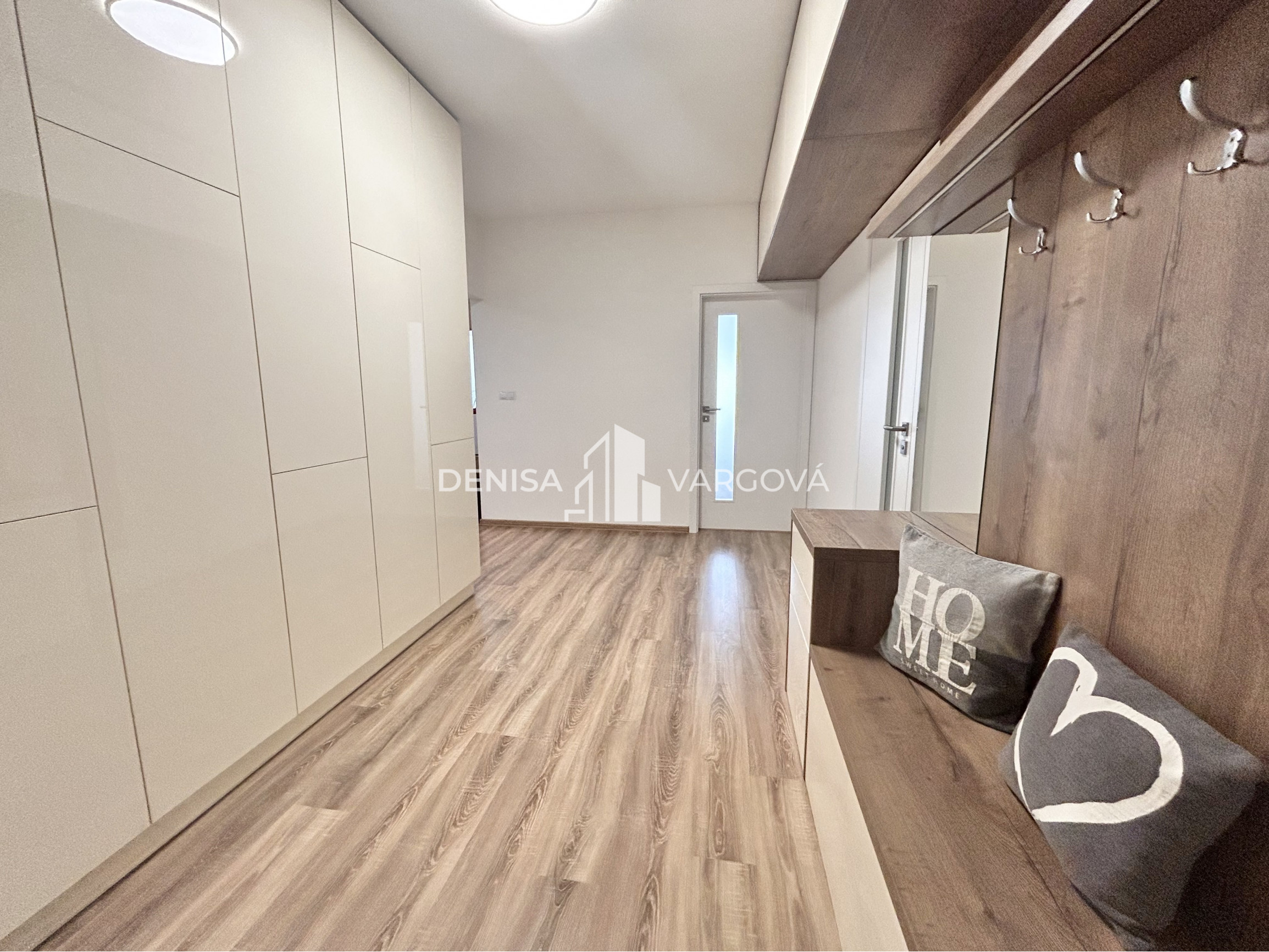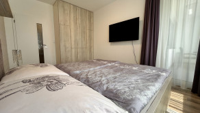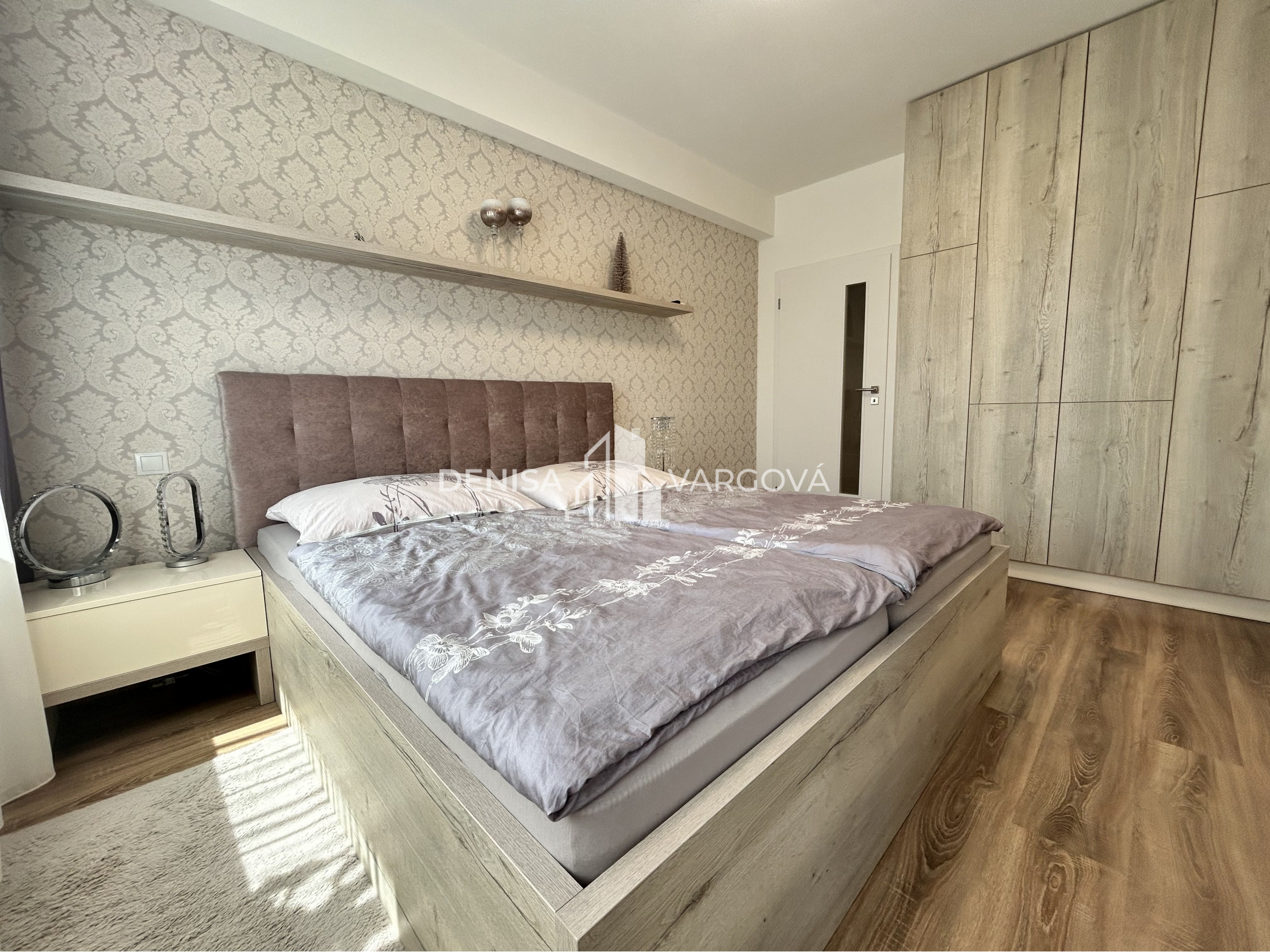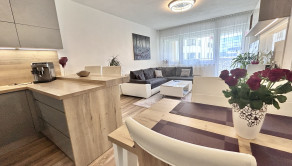 Byt je kompletne zariadený nábytkom na mieru, kuchynská linka je so zabudovanými spotrebičmi (chladnička s mrazničkou, elektrická rúra, mikrovlnná rúra, el. varná doska) a kuchynským vybavením, automatická práčka, sušička a komplet zariadenie je k dispozícii, ako je vidieť na fotodokumentácii.