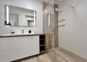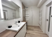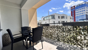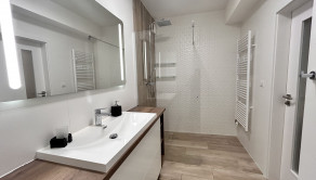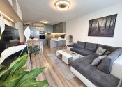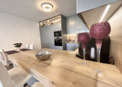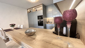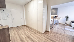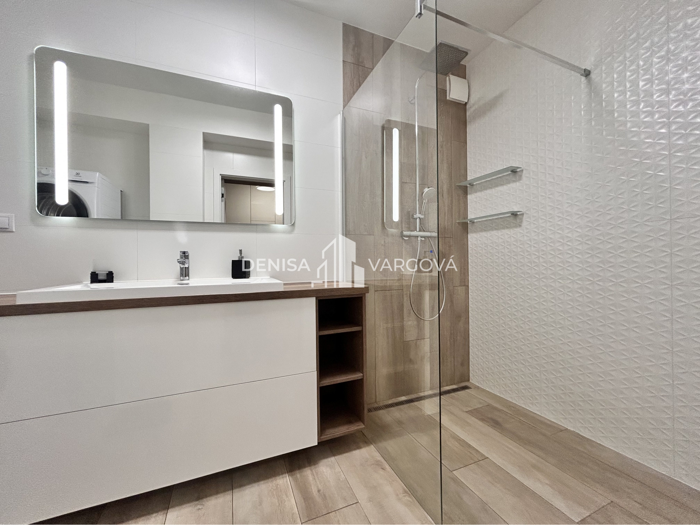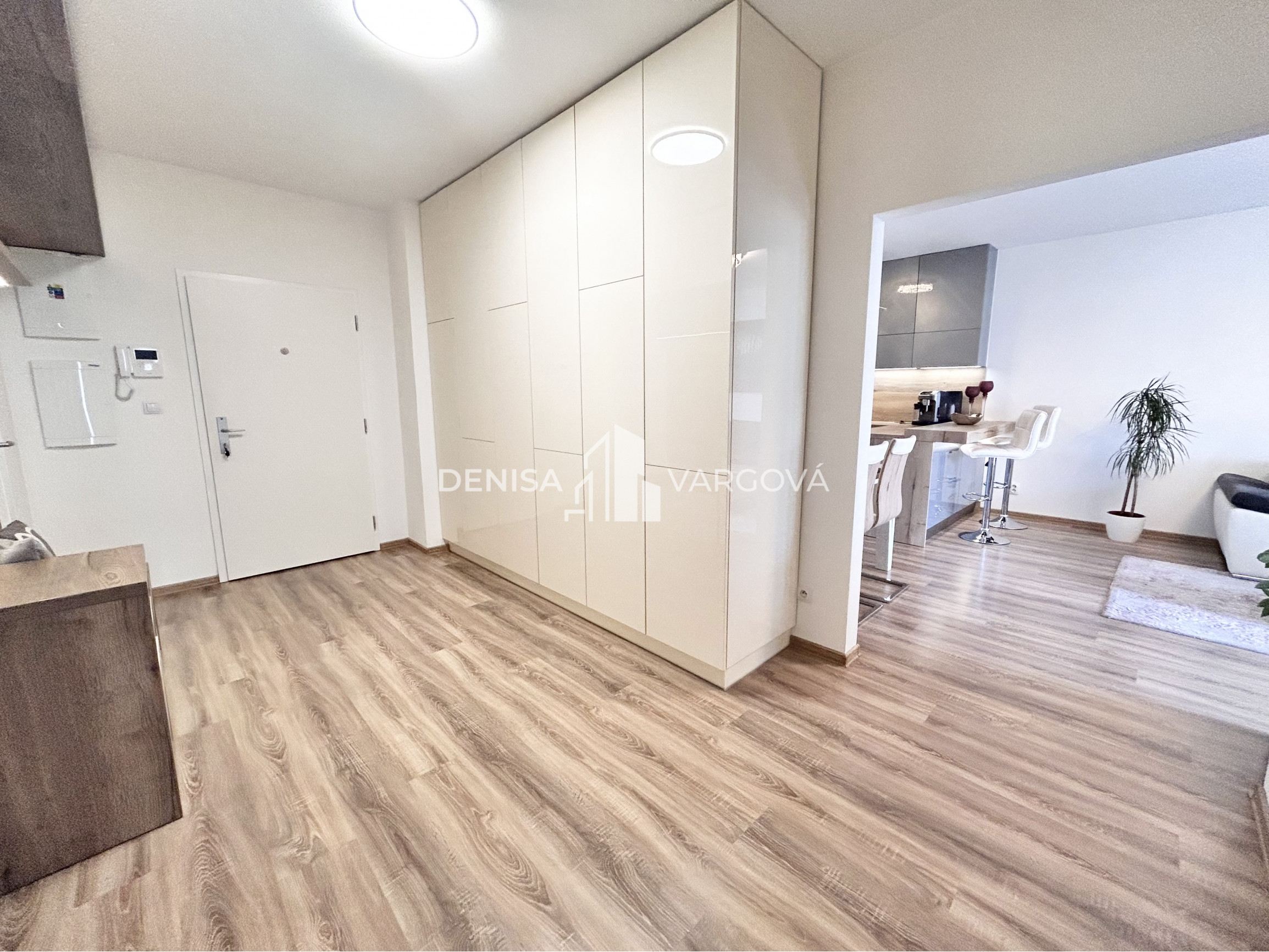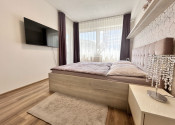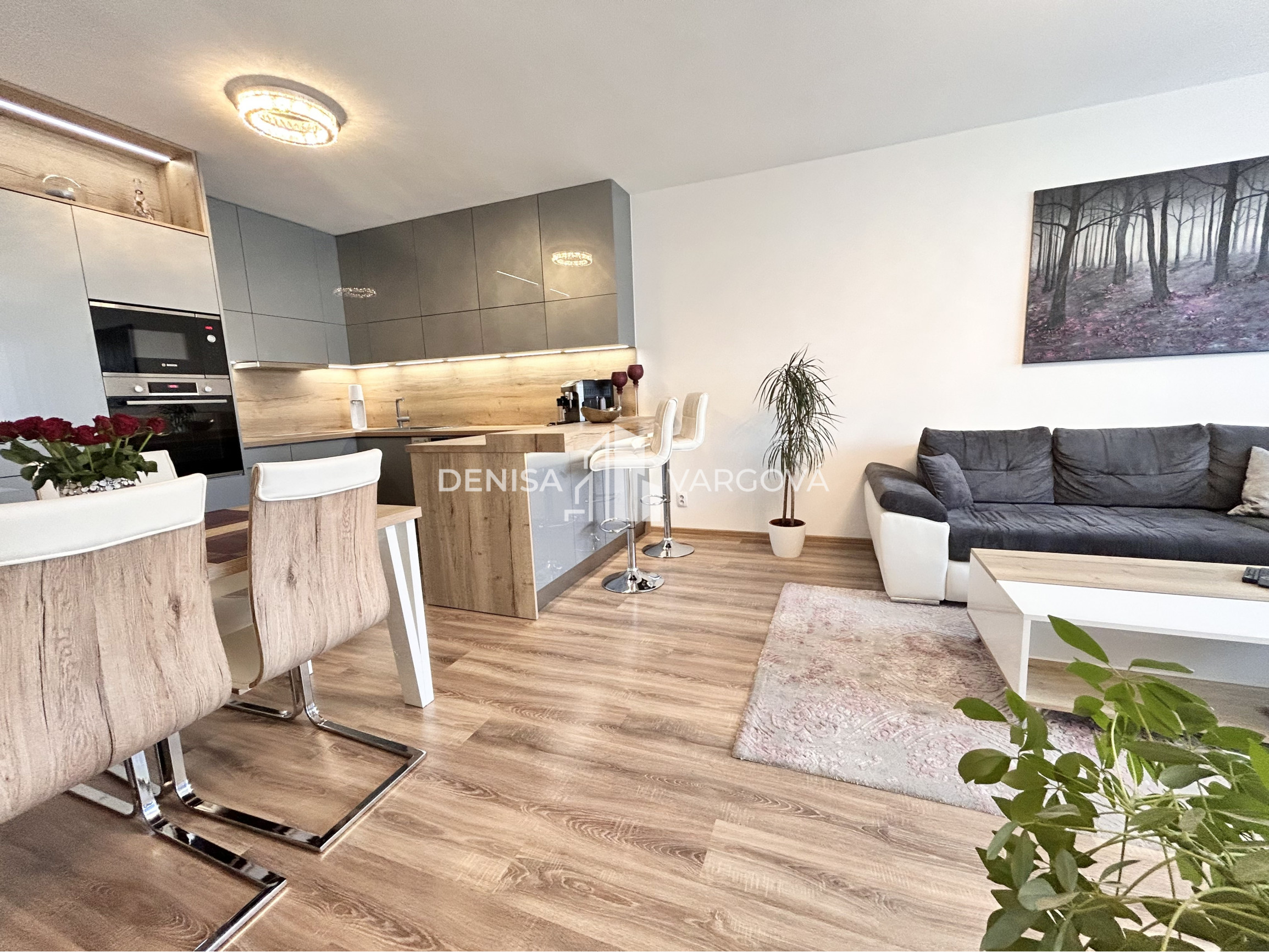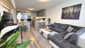 Byt je kompletne zariadený nábytkom na mieru, kuchynská linka je so zabudovanými spotrebičmi (chladnička s mrazničkou, elektrická rúra, mikrovlnná rúra, el. varná doska) a kuchynským vybavením, automatická práčka, sušička a komplet zariadenie je k dispozícii, ako je vidieť na fotodokumentácii.