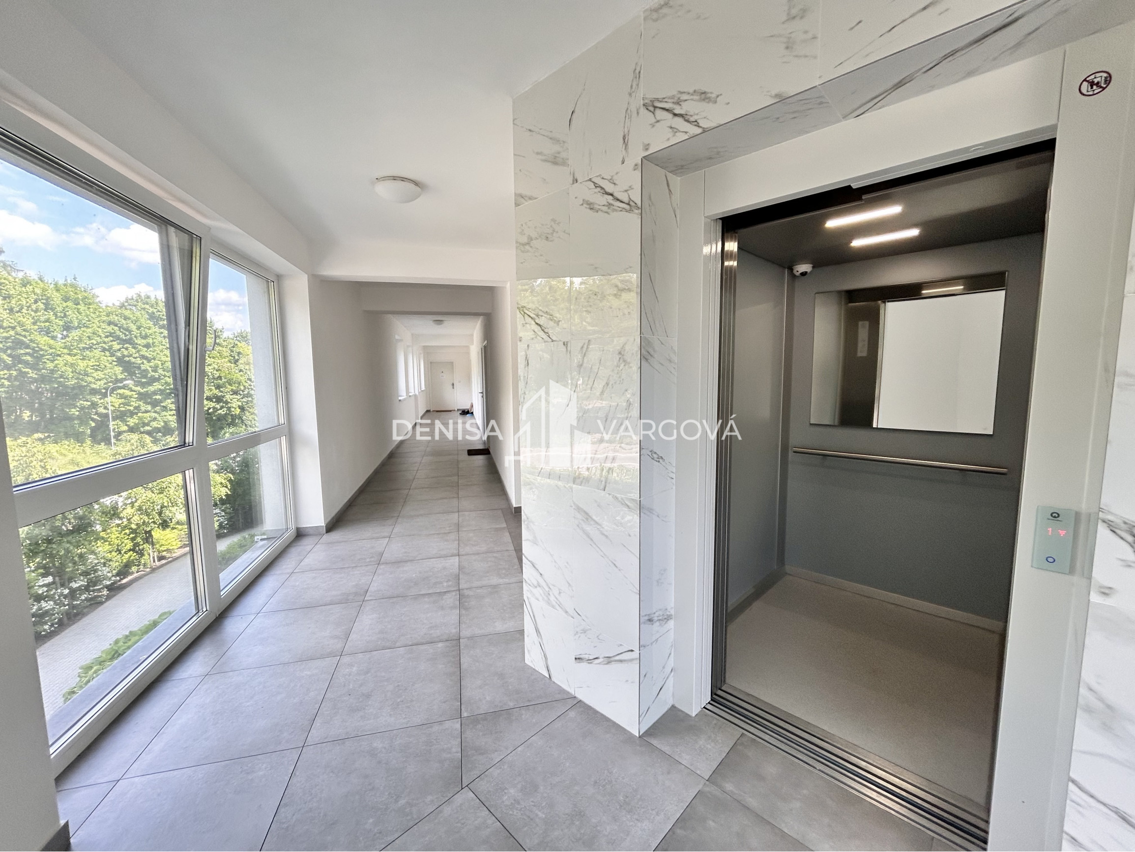 Nachádza sa v novostavbe na 1. poschodí, bezbariérového bytového domu s výťahom. V suteréne je k dispozícii garážové parkovacie státie.