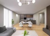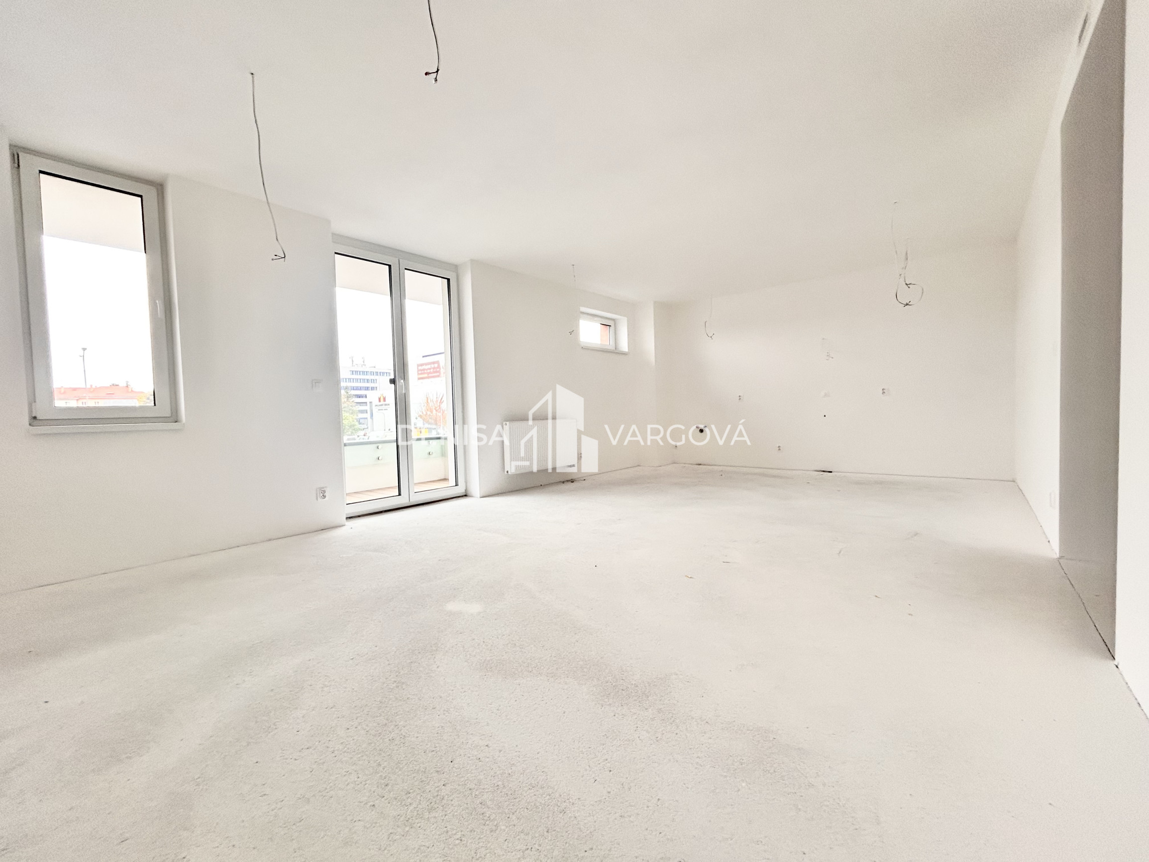 > denná časť - priestranná kuchyňa prepojená s obývačkou ( výstup na balkón o rozlohe 7,27 m² – orientácia východ )