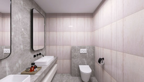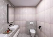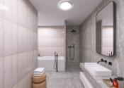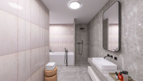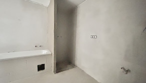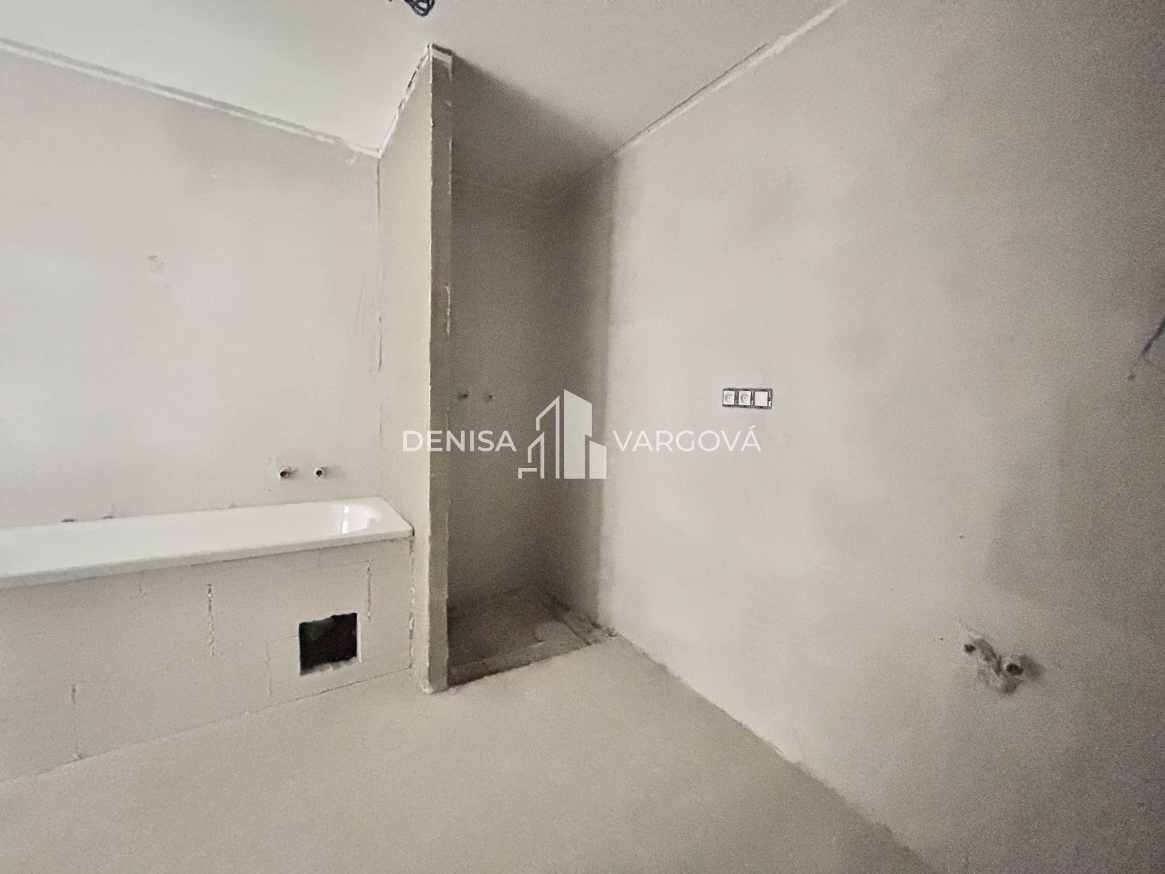 V kúpeľni je osadená vaňa s pripraveným priestorom pre sprchovací kút.