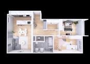 Situovaný je na 1. poschodí bezbariérového bytového domu s výťahom a disponuje dvoma balkónmi, kde si môžete vychutnávať pokojné chvíle domova. Prislúcha k nemu pivničná kobka v suteréne, kde máte dostatok priestoru na uskladnenie vecí.