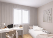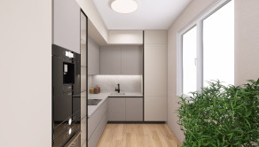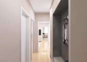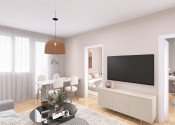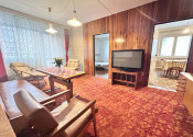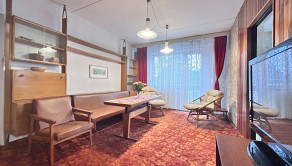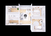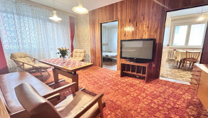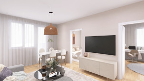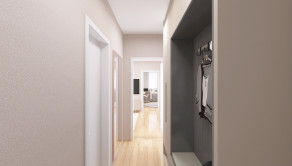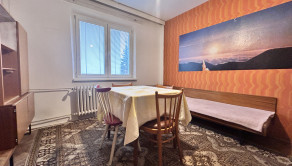 Dispozícia bytu: vstupná chodba, kuchyňa, väčšia izba s výstupom na balkón, z nej je prechod do dvoch samostatných izieb, kúpeľňa, WC